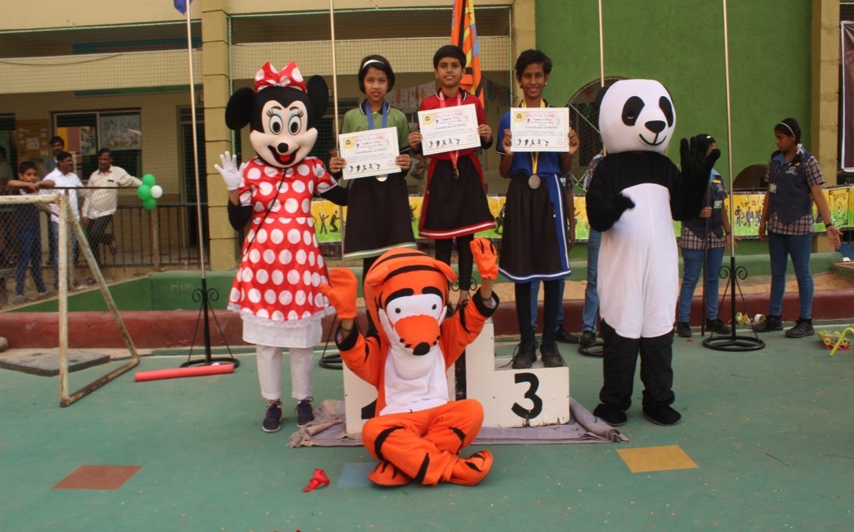 Inter School competition (sports day) is organised every alternate year. These competitions are conducted house wise and class wise, from standard 1st to 10th.